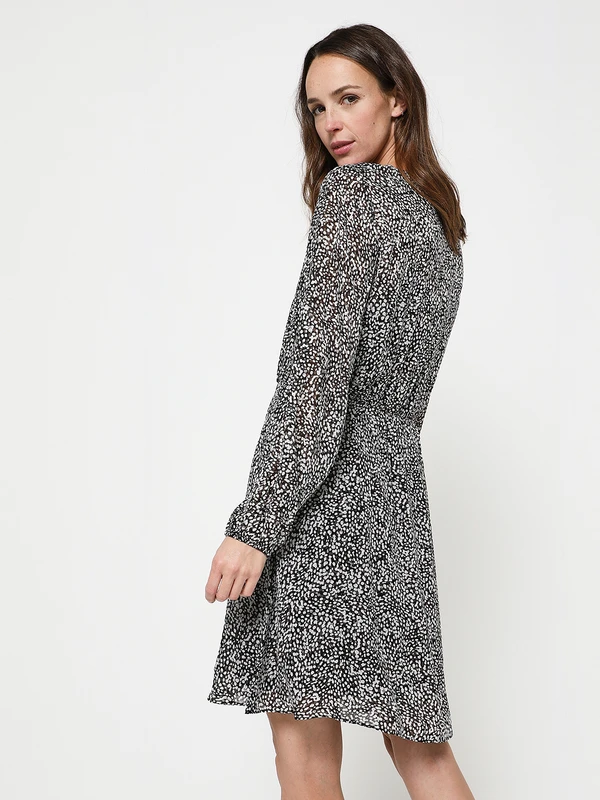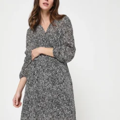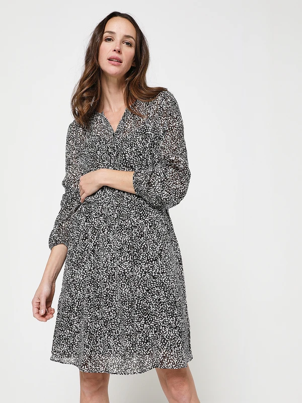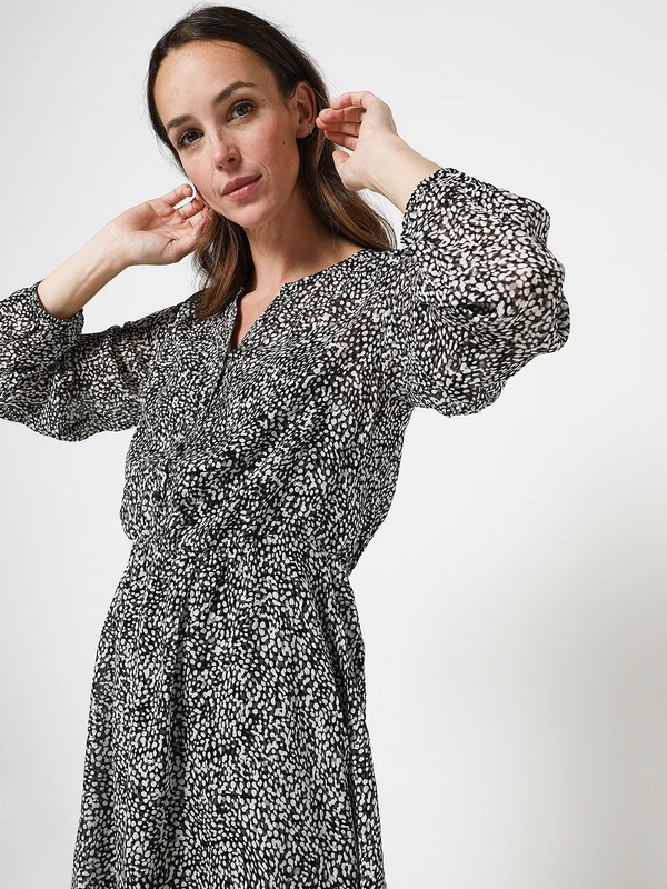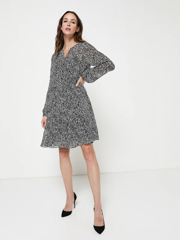 - Encolure dégagée en V, boutonnée jusque la couture taille