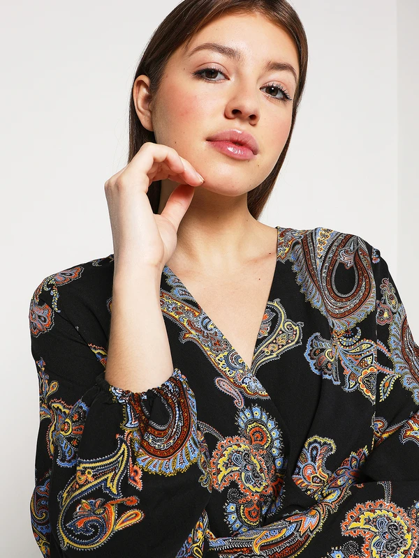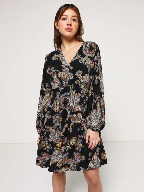 ROBE babydoll cache-cœur imprimé cachemire COMMA