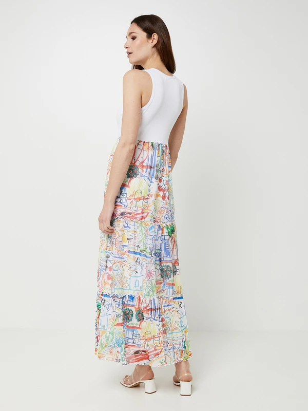 ROBE bimatière jupe en résille imprimée graffiti DESIGUAL.