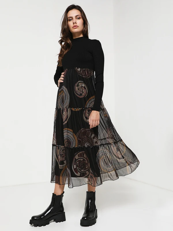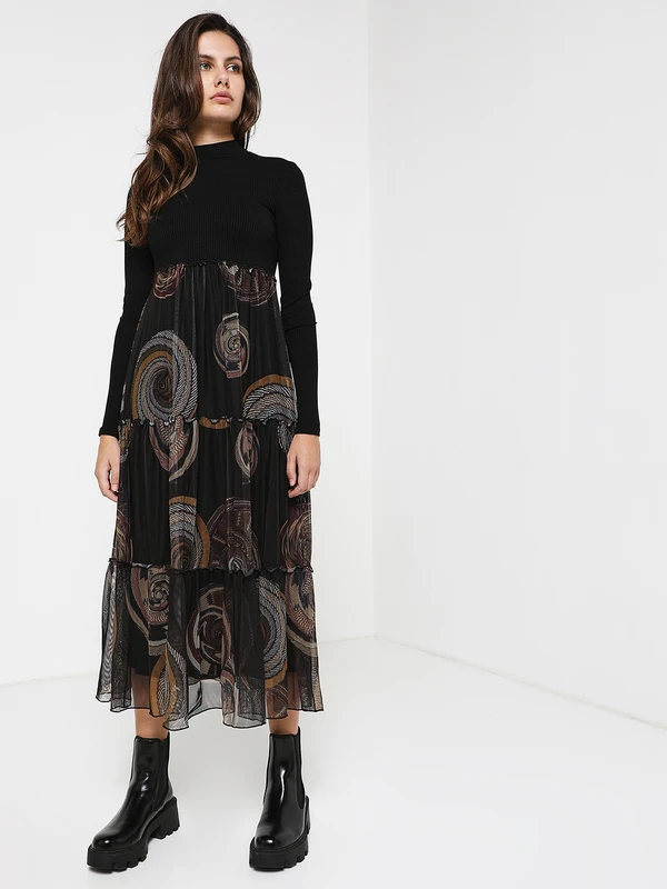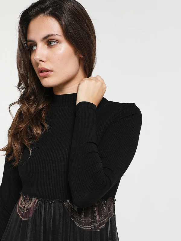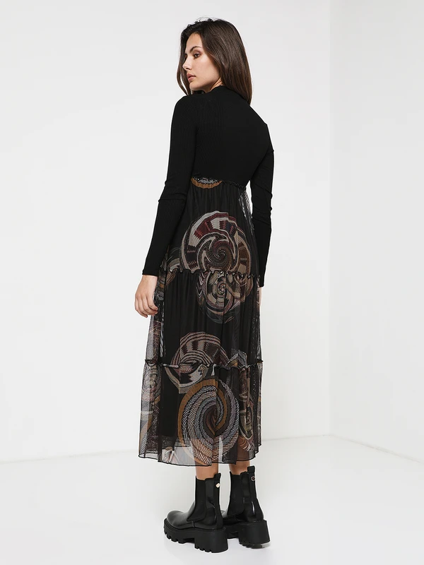 ROBE bimatière jupe en résille imprimée DESIGUAL.