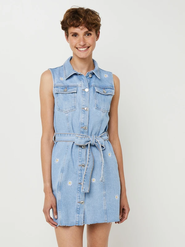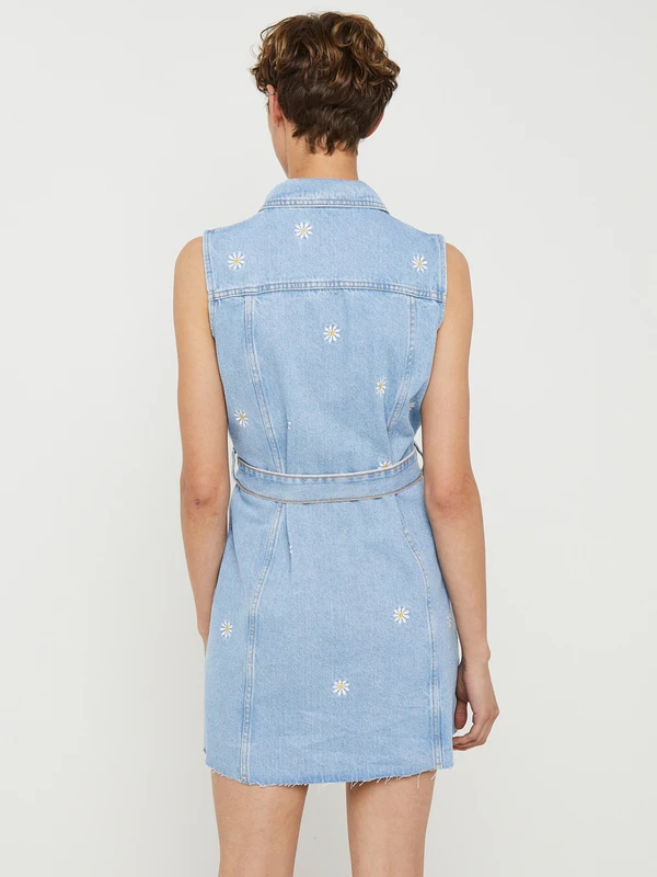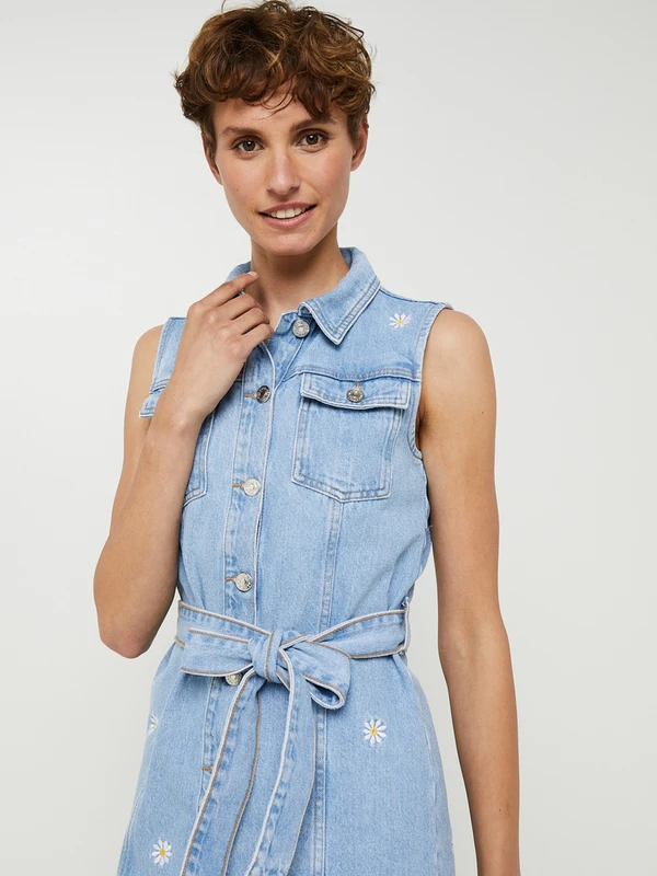 ROBE chemise courte en jean sans manches, fleurs brodées DESIGUAL.
