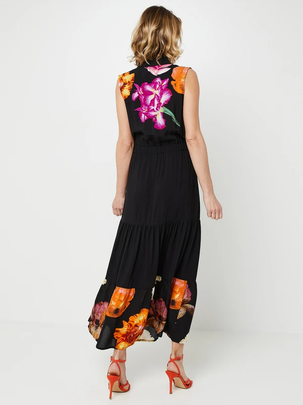 - Jupe évasée composée de deux volants unis + un volant imprimé à la base