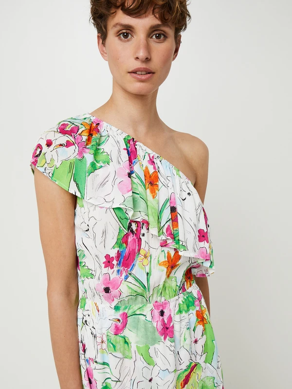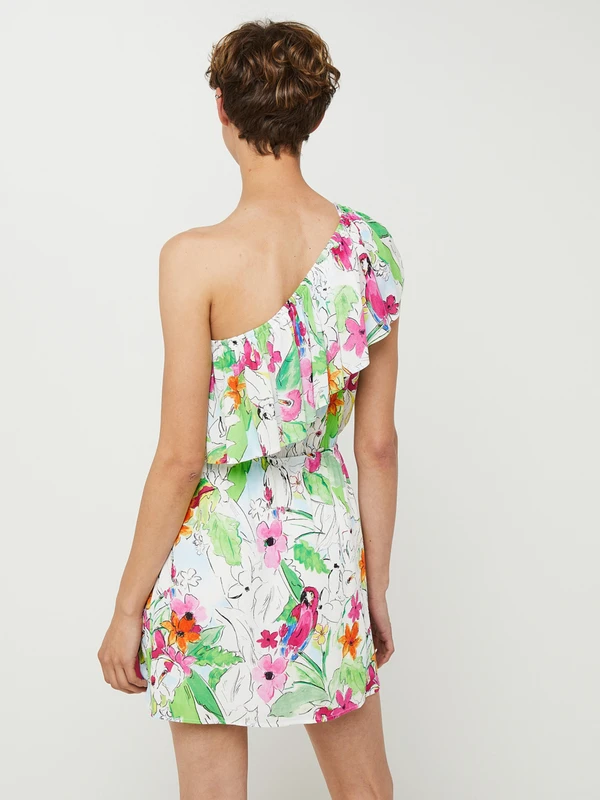 ROBE courte asymétrique en tissu crêpe à imprimé tropical DESIGUAL.