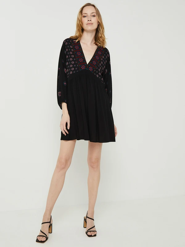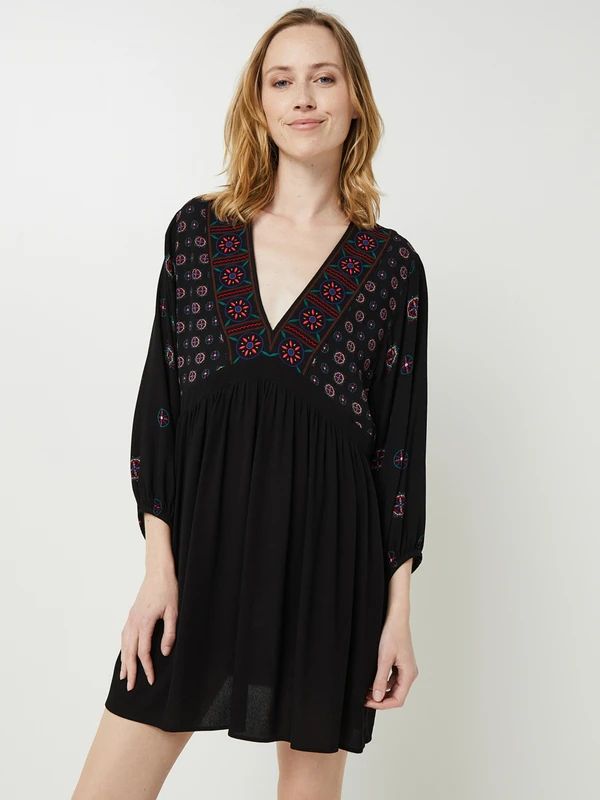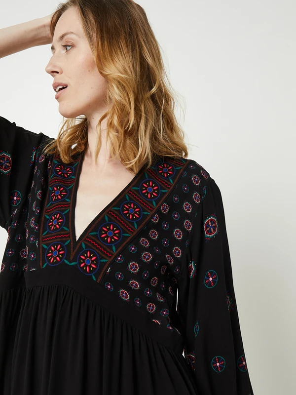 ROBE courte imprimé ethnique, col V DESIGUAL.