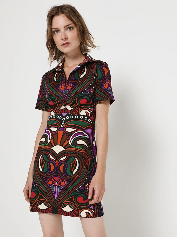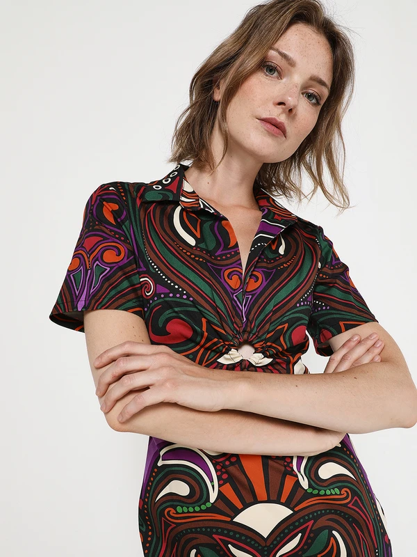 - Fente en V sur la poitrine, anneau incrusté à la pointe du décolleté soutenant des fronces