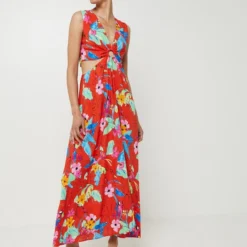 - Encolure V, agrémentée d’un anneau à fronce sous la poitrine et de découpes sur les côtés