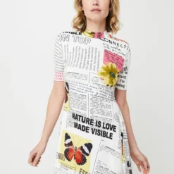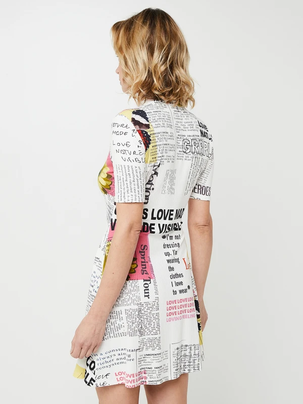 ROBE patineuse courte en maille côtelée à imprimé de coupures de journaux DESIGUAL.