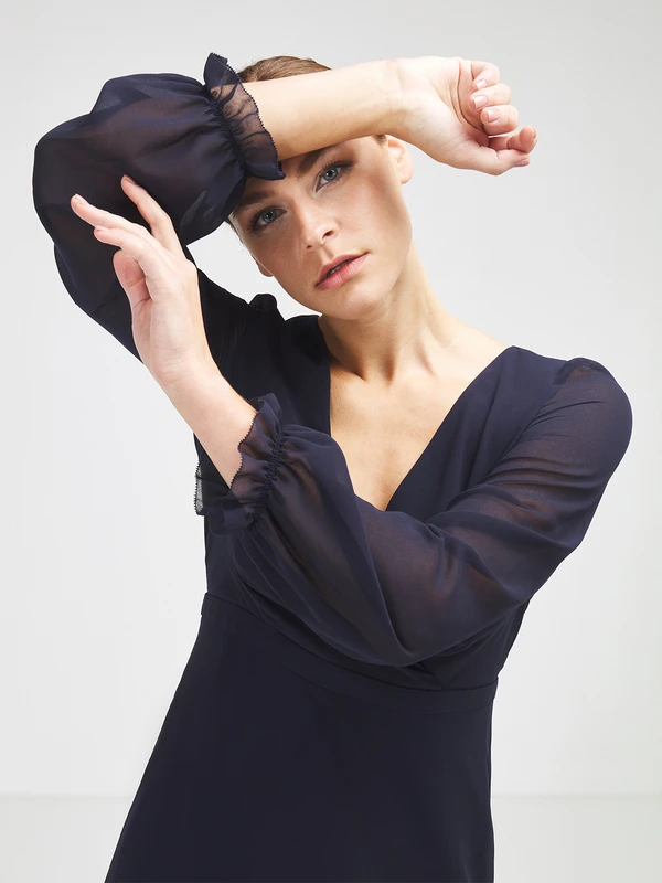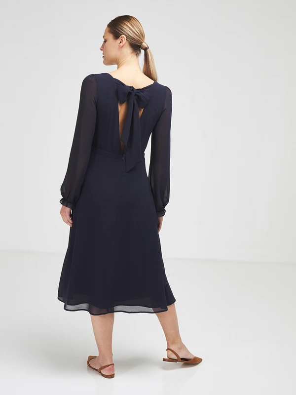 - Jupe légèrement évasée fermée par un zip invisible au dos