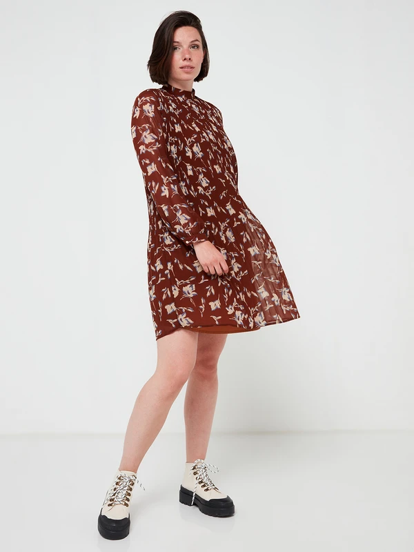 ROBE en voile plissé imprimé fleurs ESPRIT COLLECTION.