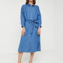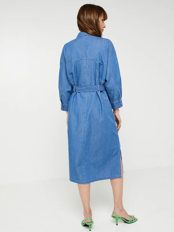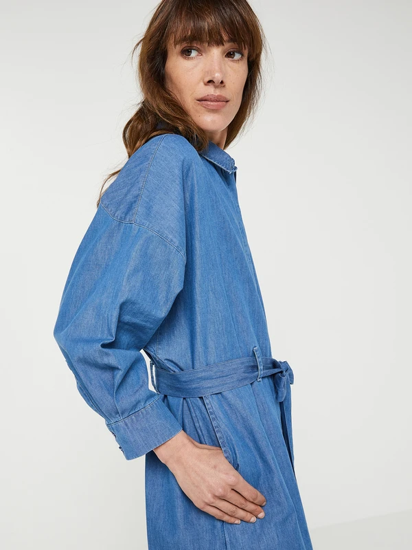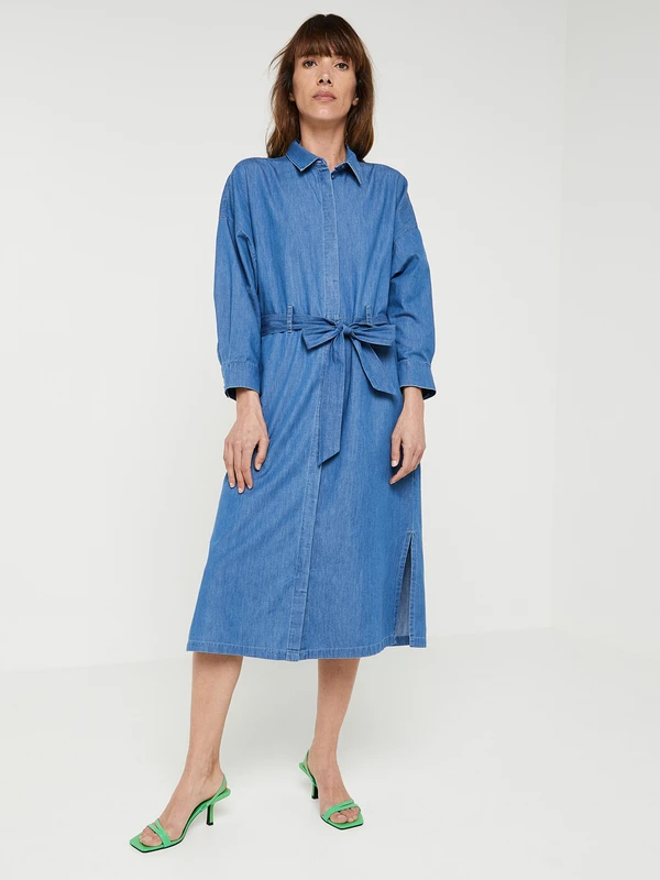 ROBE longue ceinturée, manches 3/4 ESPRIT.