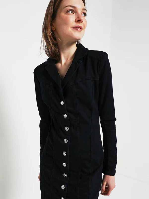 - Toile denim stretch surteinte couleur bleu nuit flatteuse pour la silhouette