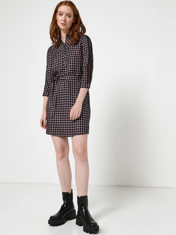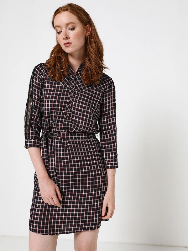 ROBE blousante ceinturée à carreaux IKKS WOMEN