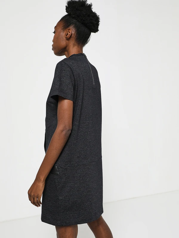 - Couture taille basse décorée de deux rabats fantaisie en simili noir devant