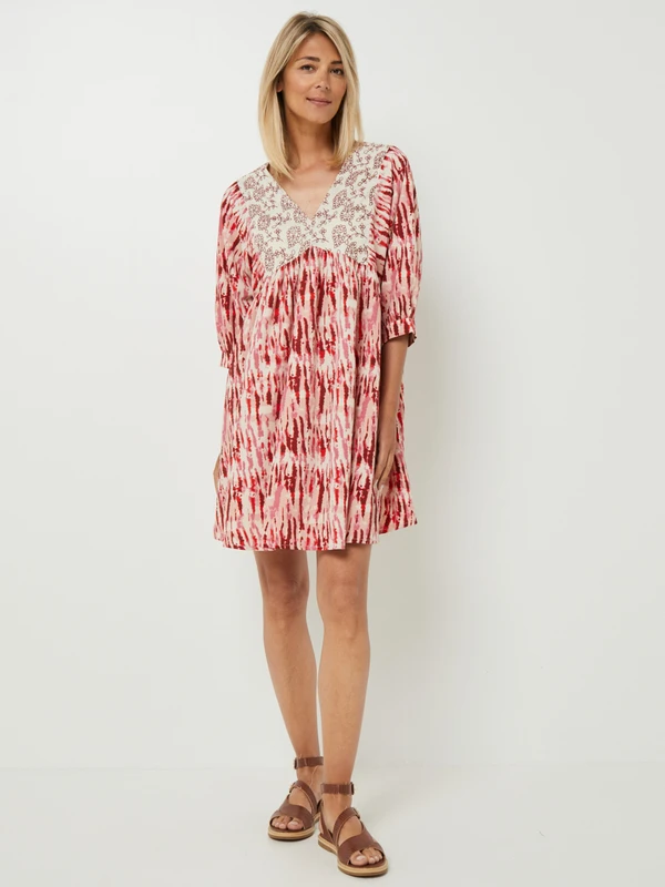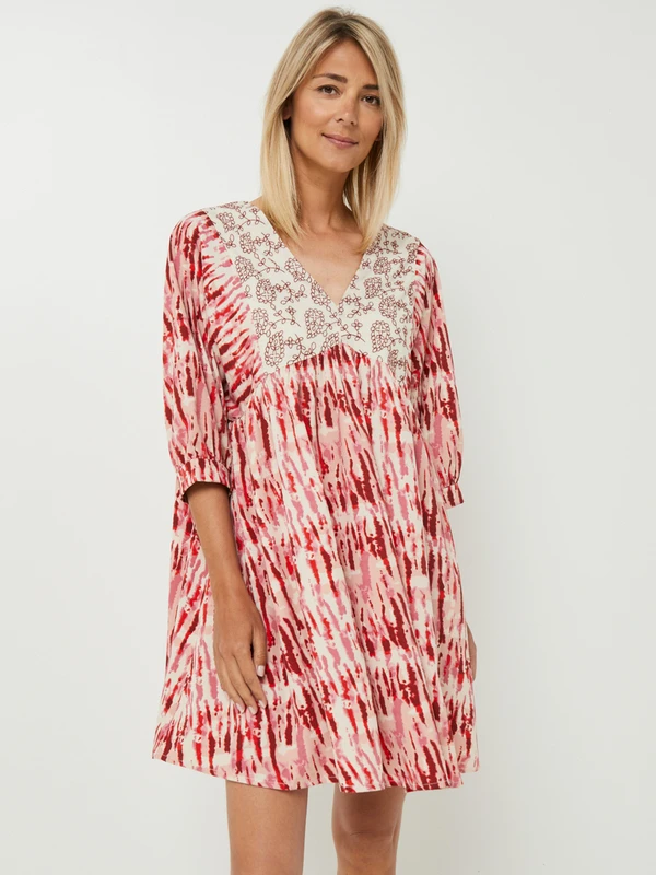 ROBE babydoll à imprimé ikat, bustier fleuri brodé KAPORAL.
