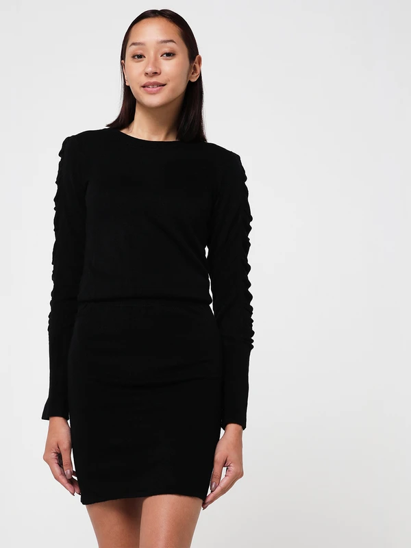 - Effet bouillonnant sur le dessus des manches terminées par un large manchon en côtes 1/1