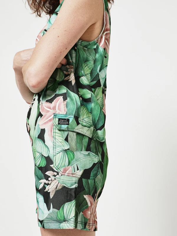 - Étiquette au détail de firme KAPORAL cousue sur une des deux poches plaquées avec rabat pressionnée sur les côtés de la robe