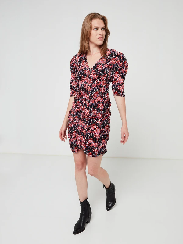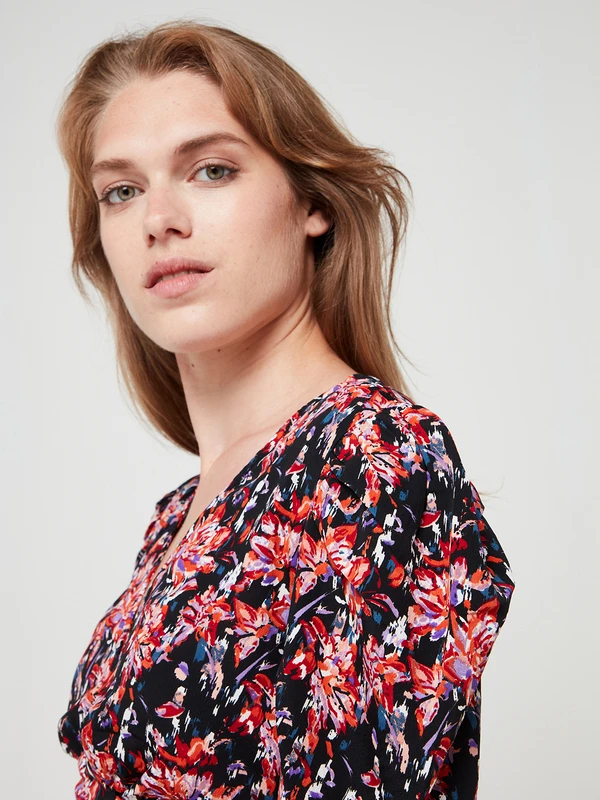 - Poitrine préformée par une couture en V renversée soutenant des fronces