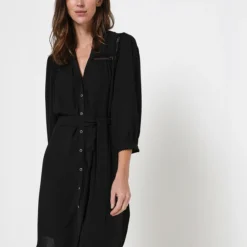 - Boutonnage jusqu’en bas : boutons raffinés coloris (noir/doré)