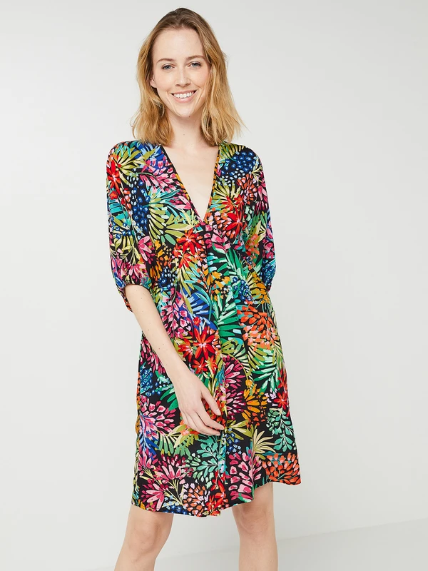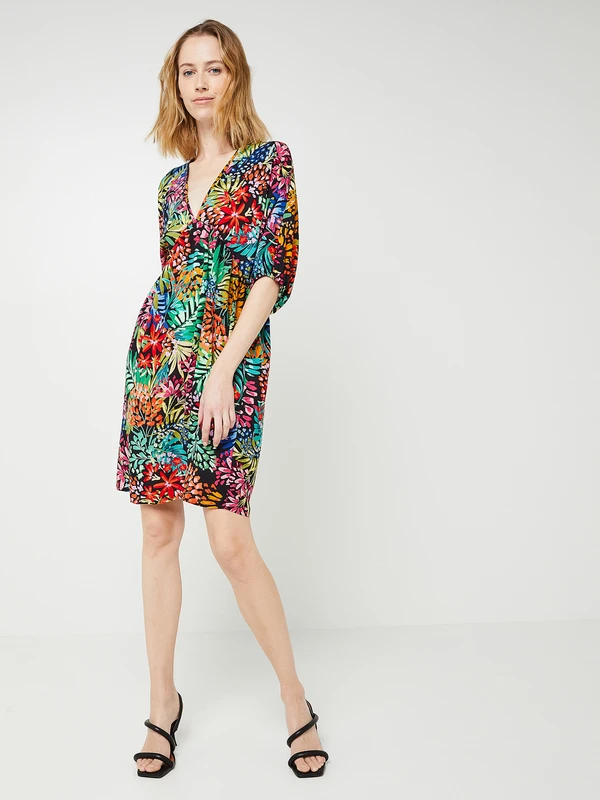 ROBE courte décolleté dos, manches chauve souris, motif fleuri MOLLY BRACKEN.