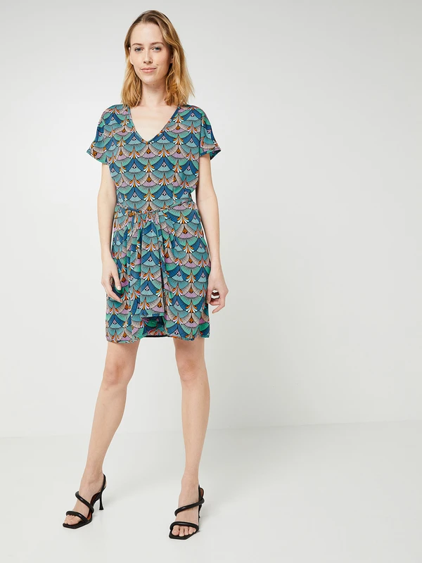 ROBE courte imprimé palmettes, jupe drapée MOLLY BRACKEN.