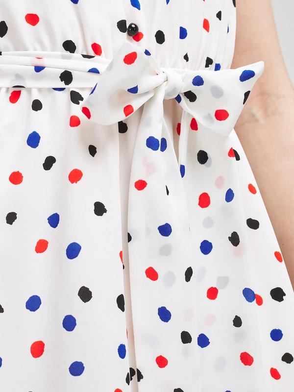 - Livrée avec une ceinture en tissu imprimé à nouer sous passants