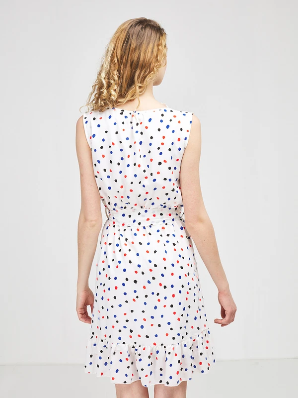- Décolleté V devant et empiècements d’épaules bordés d’un volant froncé