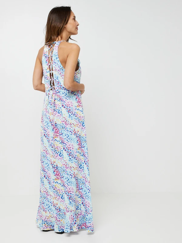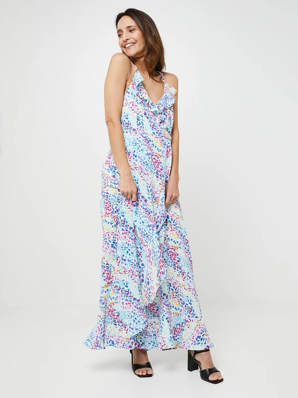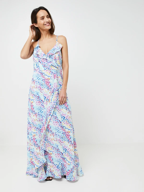 ROBE longue effet portefeuille imprimé tacheté multicolore MOLLY BRACKEN.