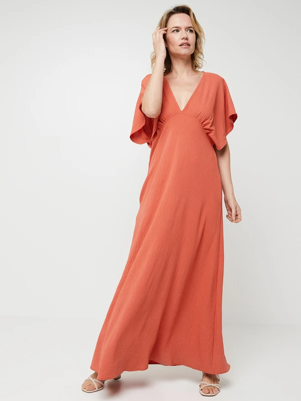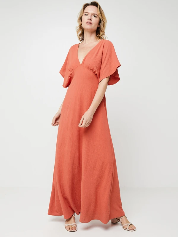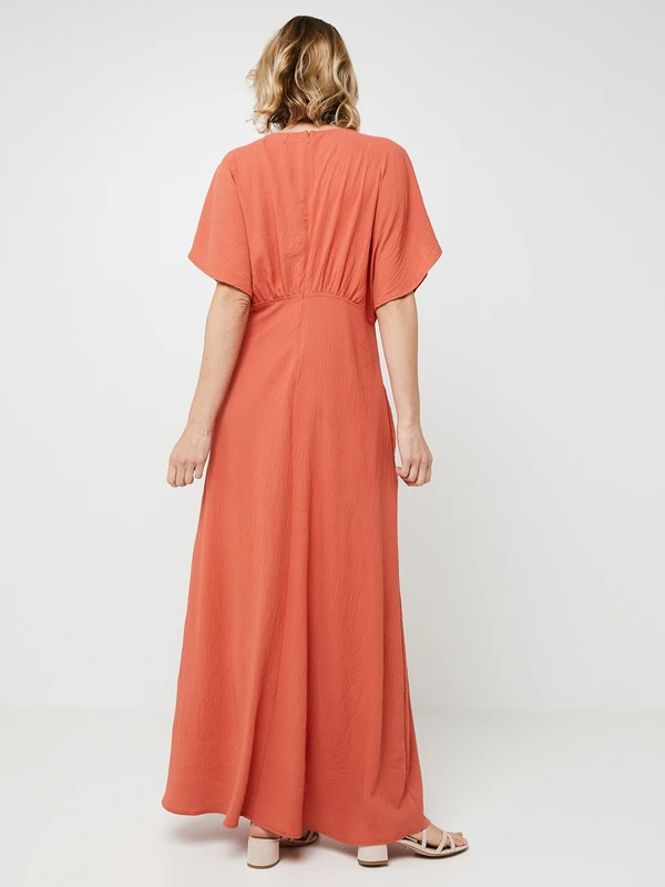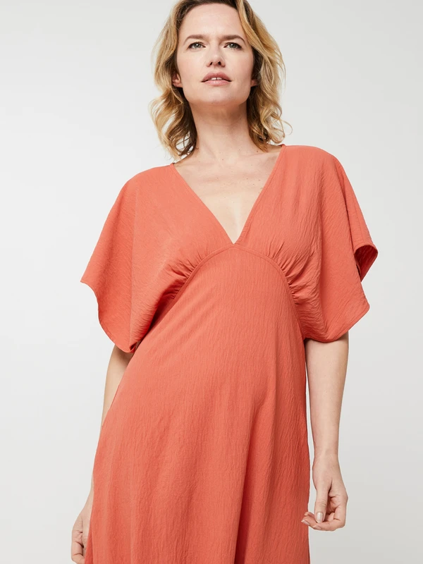 - Couture arrondie sous la poitrine, droite au dos taille haute, soutenant des fronces