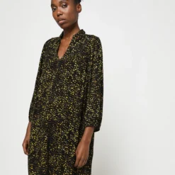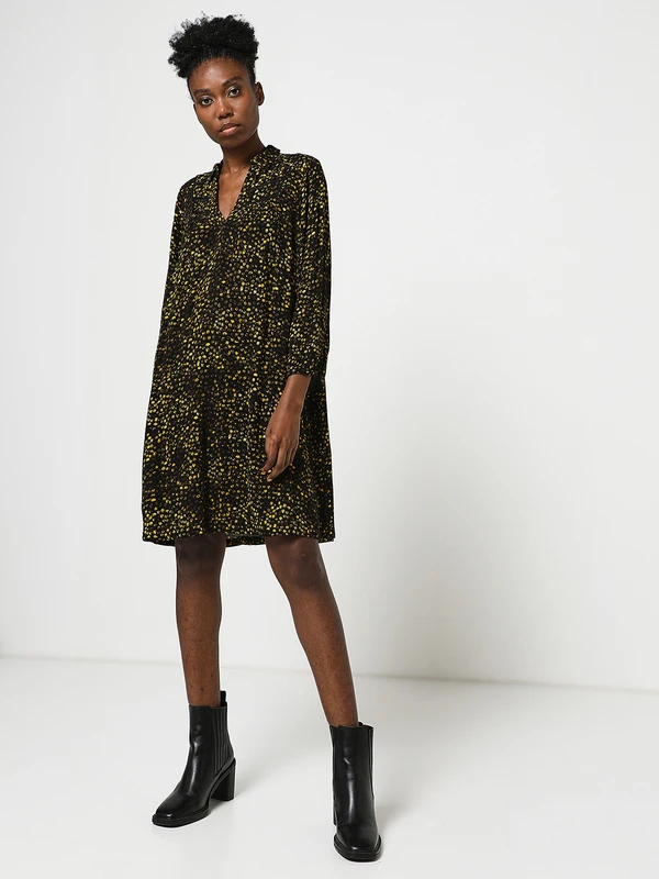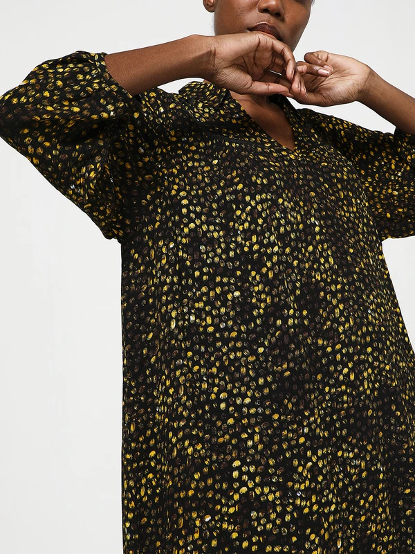 - Empiècement poitrine dégagé en V, décoré de rubans gros grain noirs de chaque côté, soutenant des fronces
