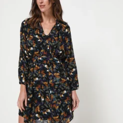 - Livrée avec une ceinture en tissu imprimé à nouer