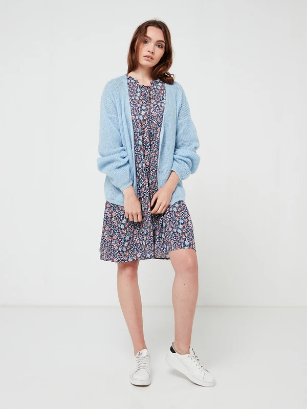 Cette robe est porté avec le gilet C’EST BEAU LA VIE !