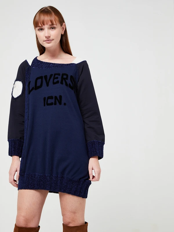 - Inscription Lovers ! ICN. en fausse fourrure noire sur la poitrine