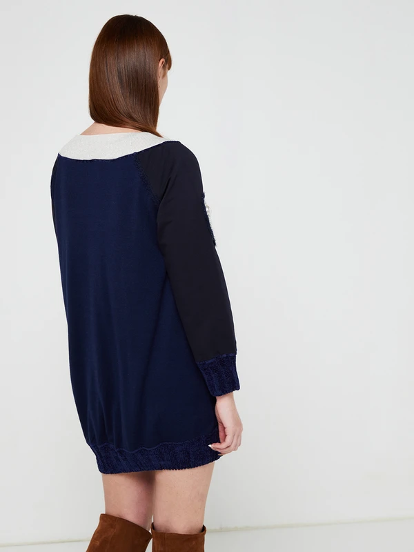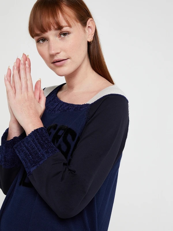 - Empiècement vertical sur un côté devant, bord côtes aux poignets et à la base en maille chenille ton sur ton