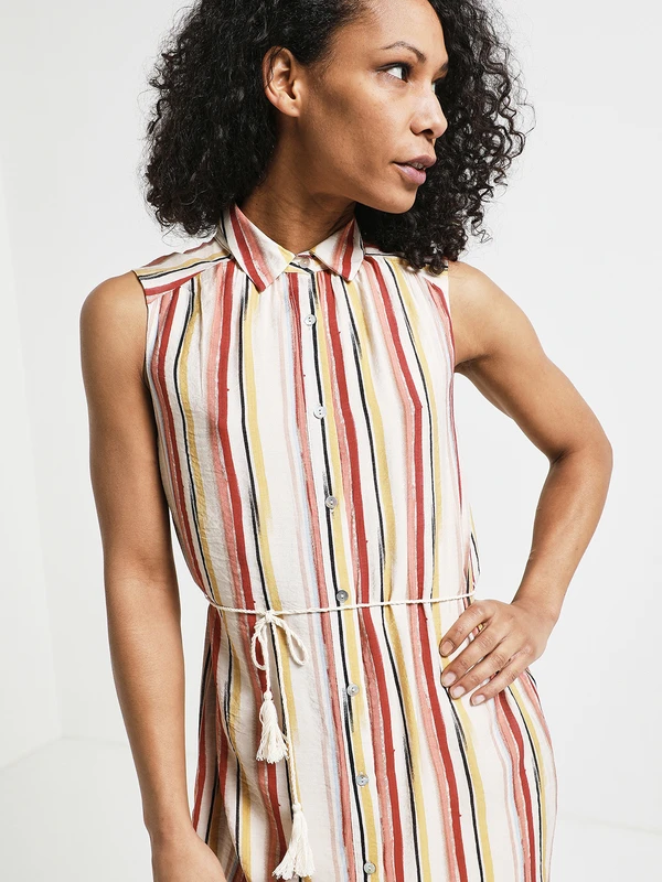 - Col chemisier et fermeture boutonnée devant jusqu’en bas