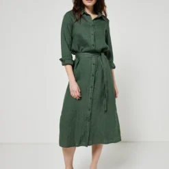 - Taille ajustée par passants et ceinture en lin assortie à nouer