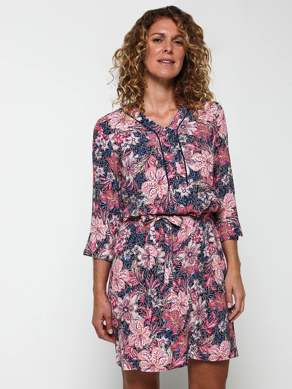 - Encolure dégagée en V devant finition biais jusqu’à la poitrine