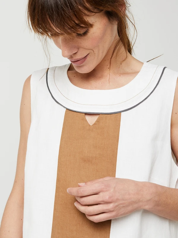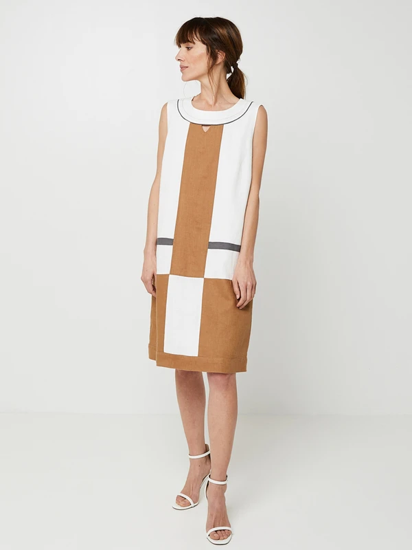 ROBE droite en lin empiècements contrastés DIANE LAURY.