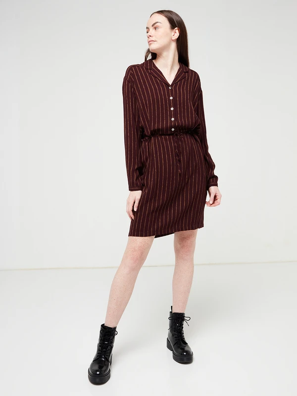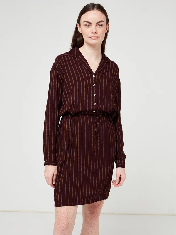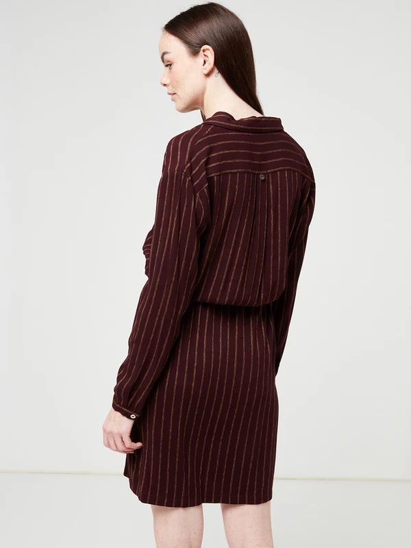 Élégante en toute occasion, cette ROBE MADO ET LES AUTRES est imprimée de fines rayures qui allongent la silhouette.