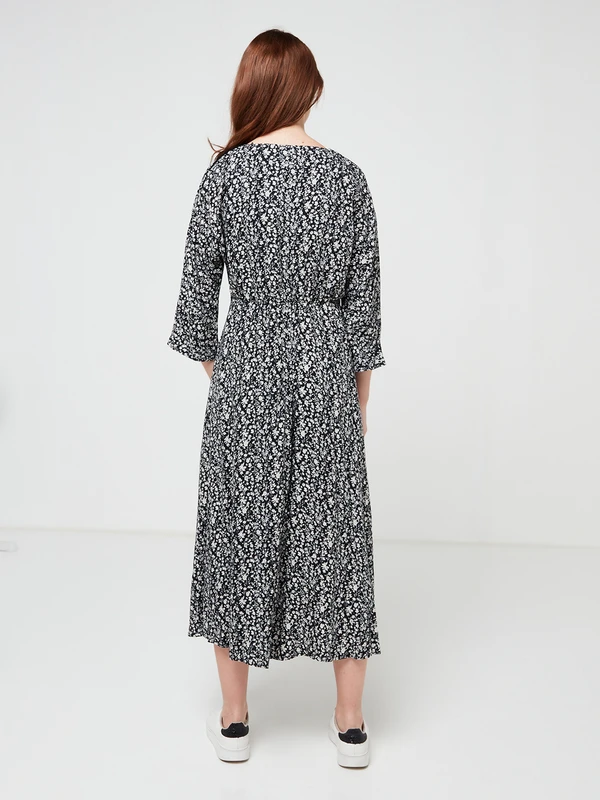 ROBE effet portefeuille imprimée petites fleurs monochromes C’EST BEAU LA VIE !