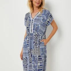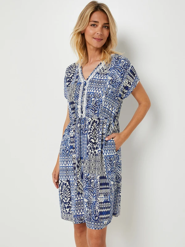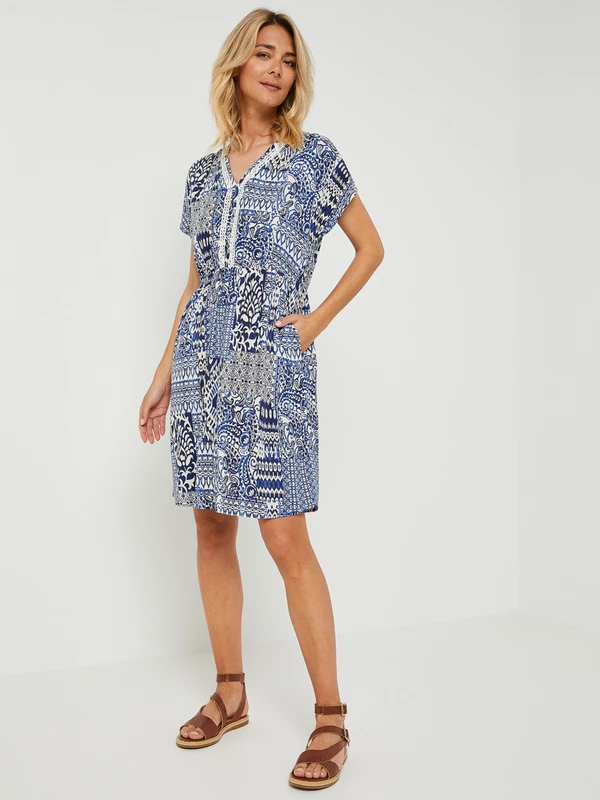 ROBE en crépon imprimé avec dentelle JULIE GERLANDE.