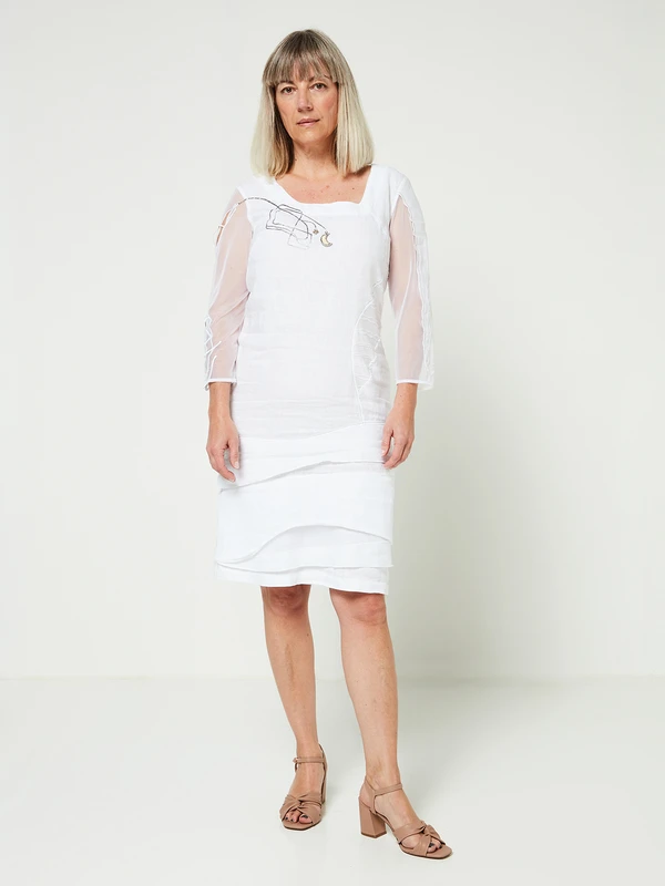 ROBE en lin avec manches en résille ELISA CAVALETTI.