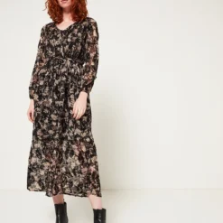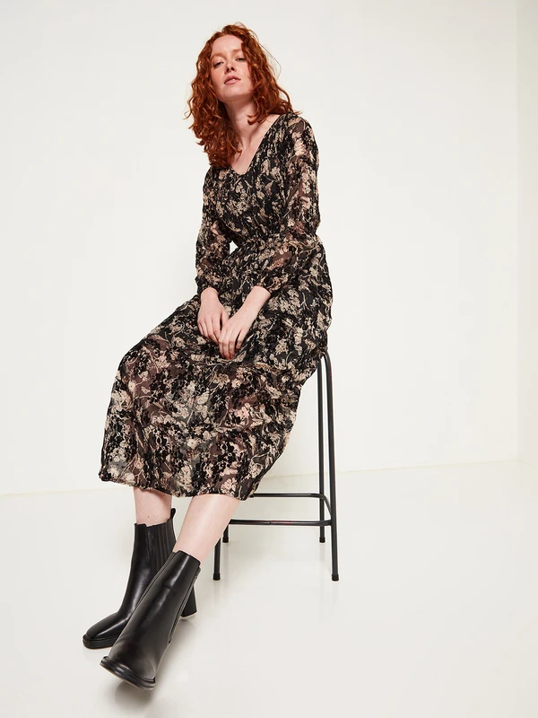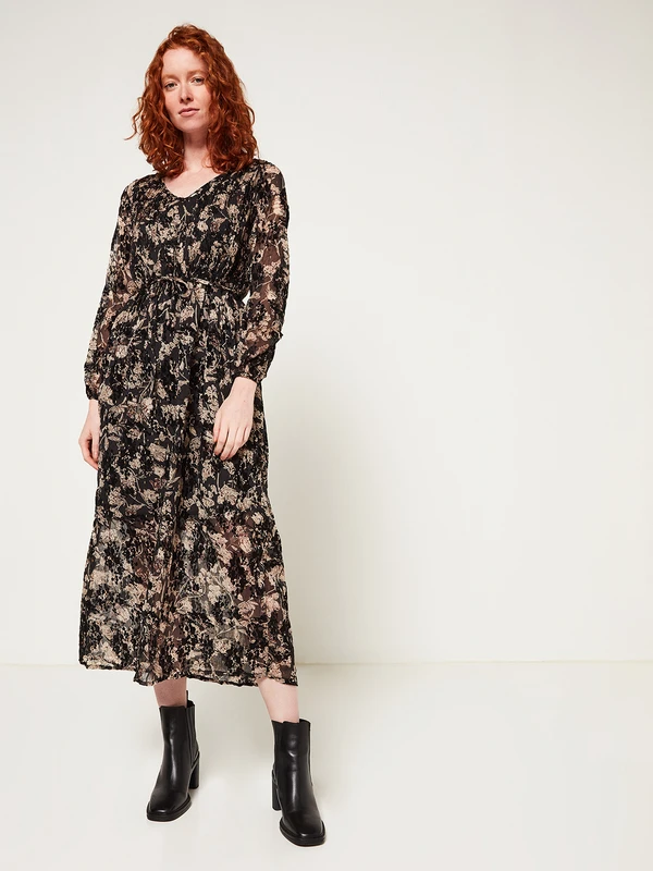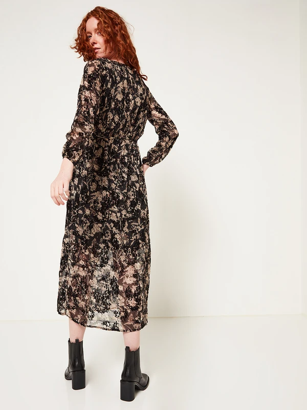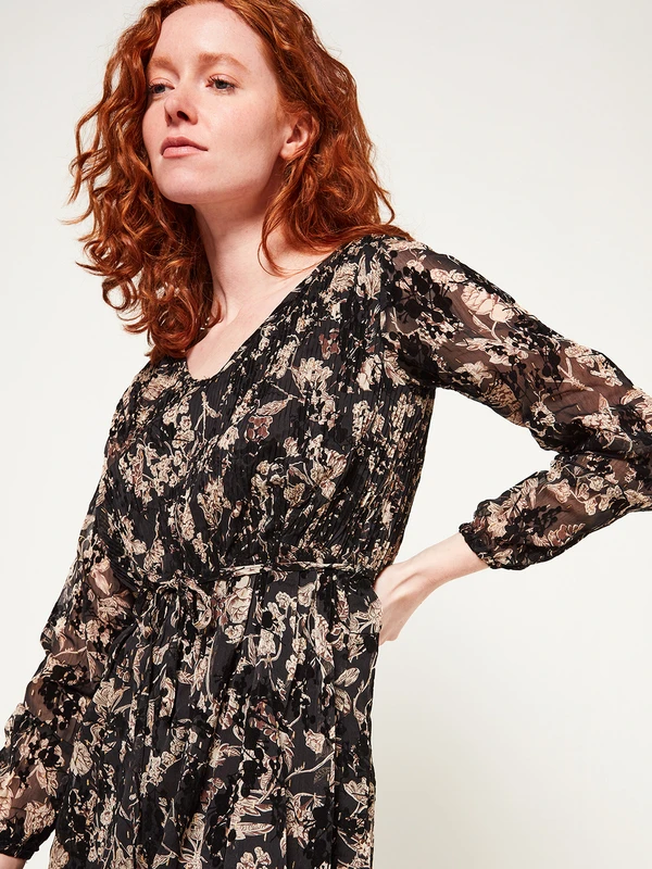 ROBE en voile floqué velours imprimée fleurs JULIE GUERLANDE.