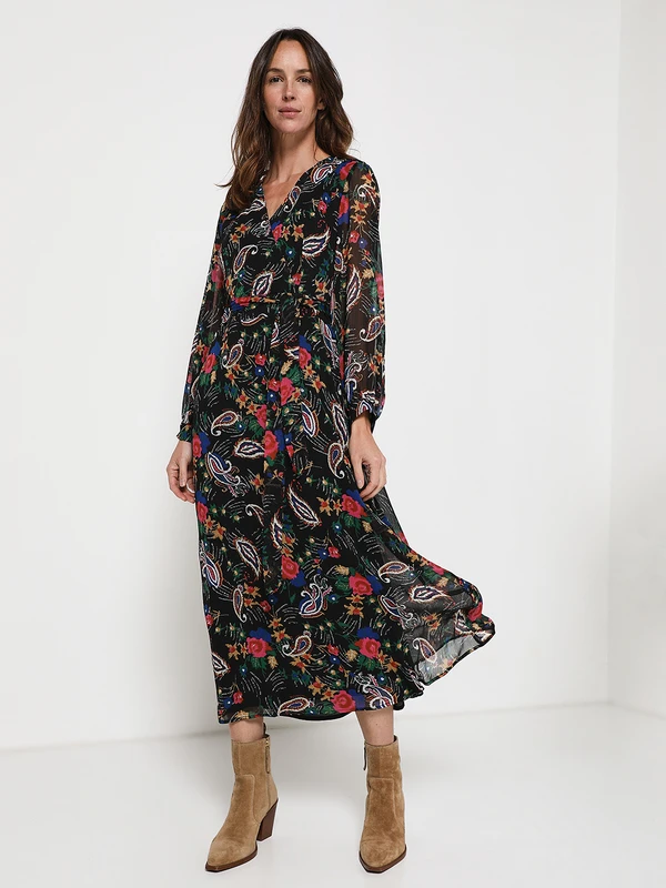 ROBE en voile imprimé cachemire LA FÉE MARABOUTÉE.