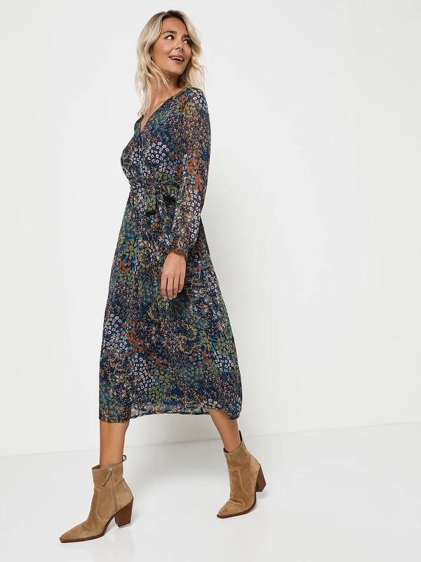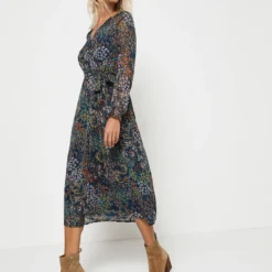 - Deux panneaux croisés sur la poitrine, fermés par pression à la pointe du décolleté