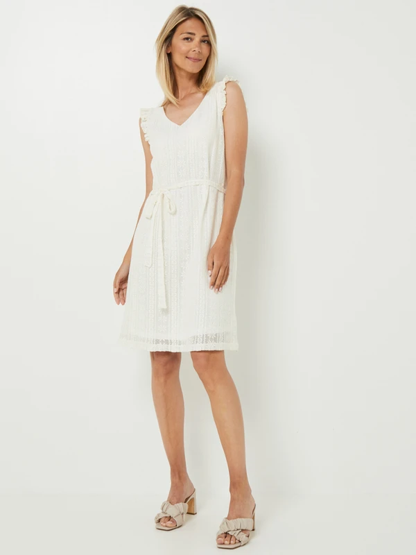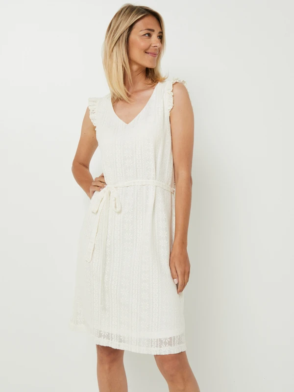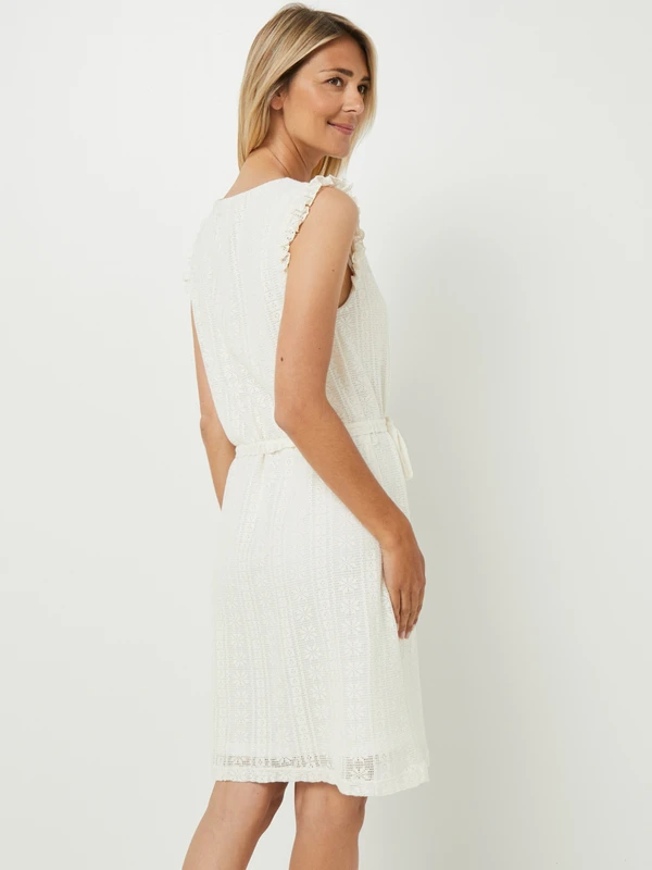 ROBE housse ceinturée en tissu jacquard ajourée effet broderie JULIE GUERLANDE.