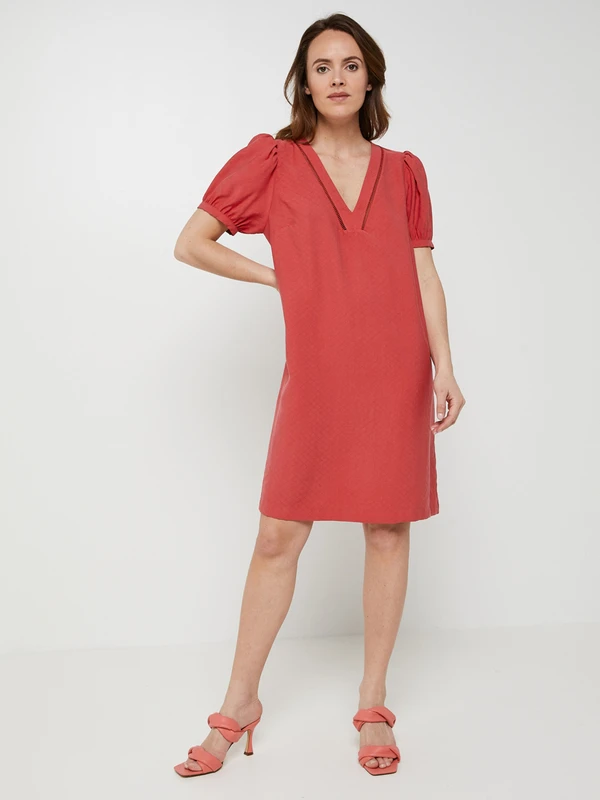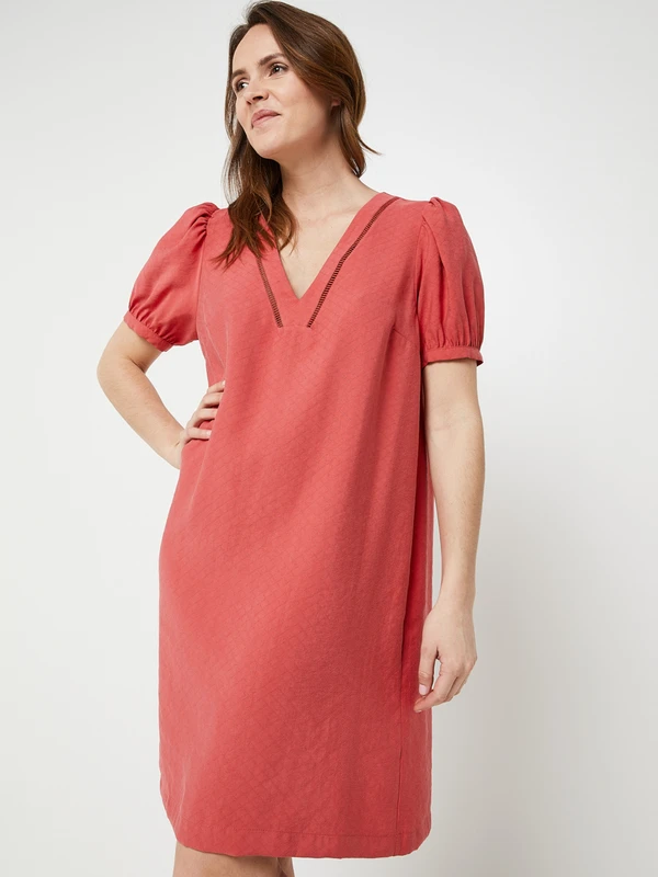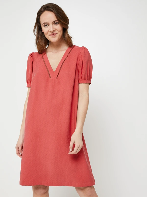 - Encolure en V décorée d’un galon jour échelle de chaque côté