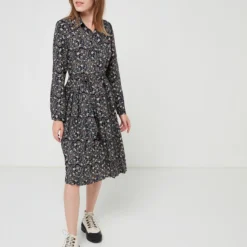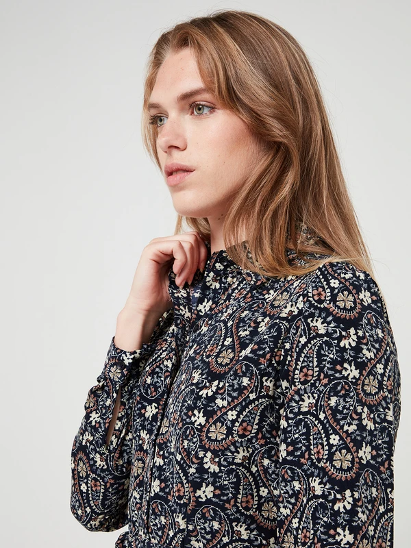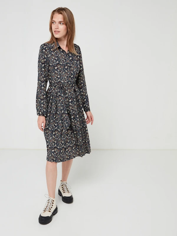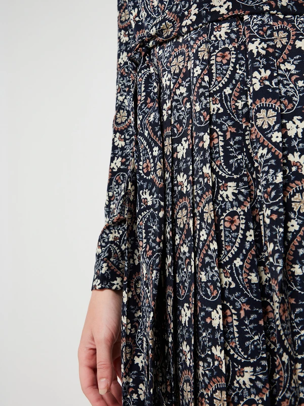 ROBE imprimée THE KORNER. Motif cachemire revisité avec effet brodé du plus bel effet. Le charme à la pointe de la tendance.