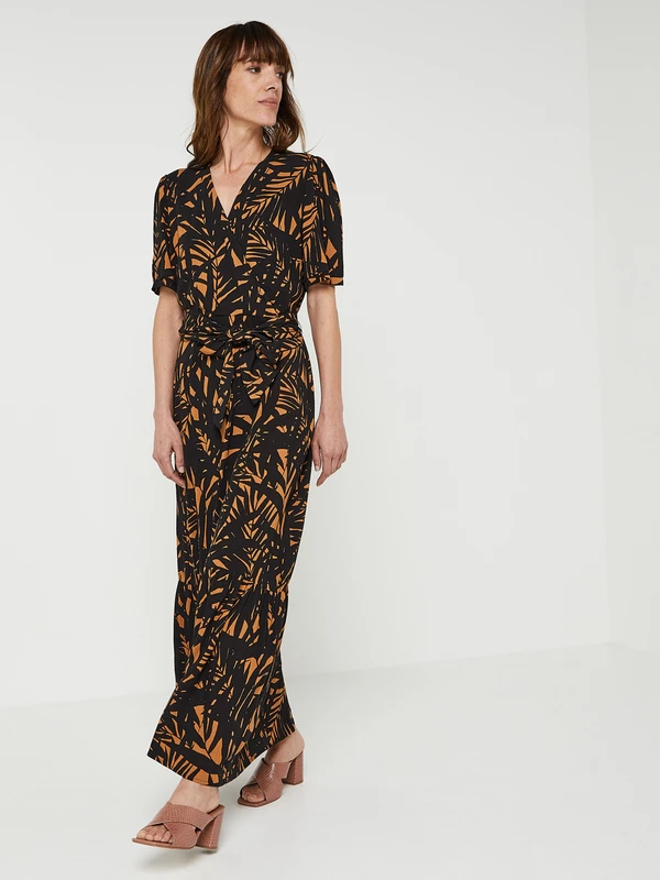 - Tissu fluide crêpé, imprimé feuillage