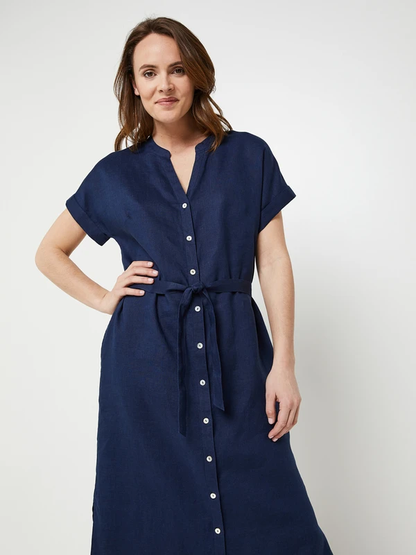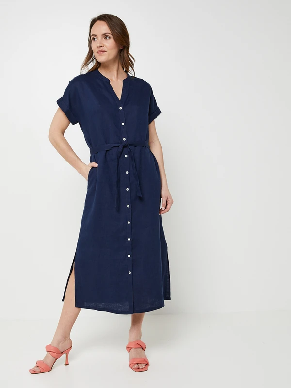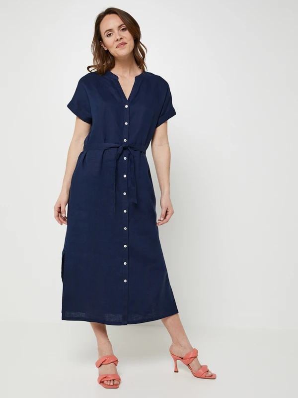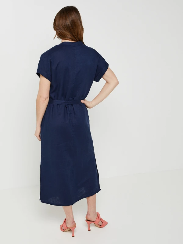 ROBE longue unie en 100% lin, encolure tunisienne JULIE GUERLANDE.
