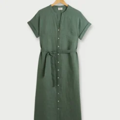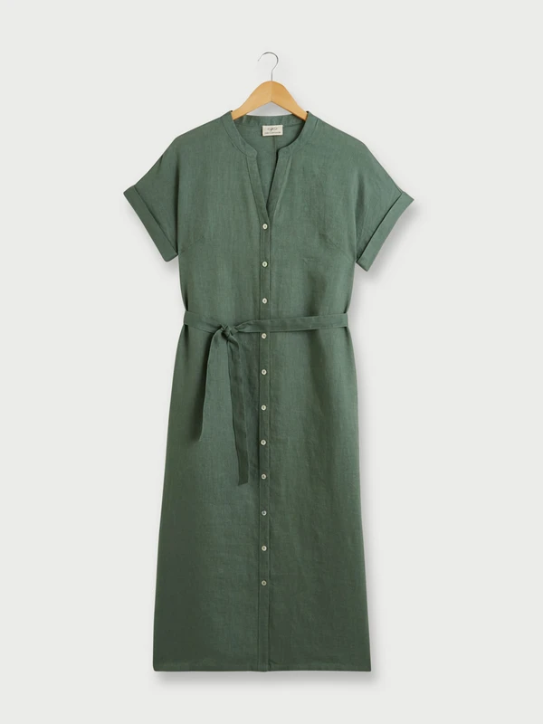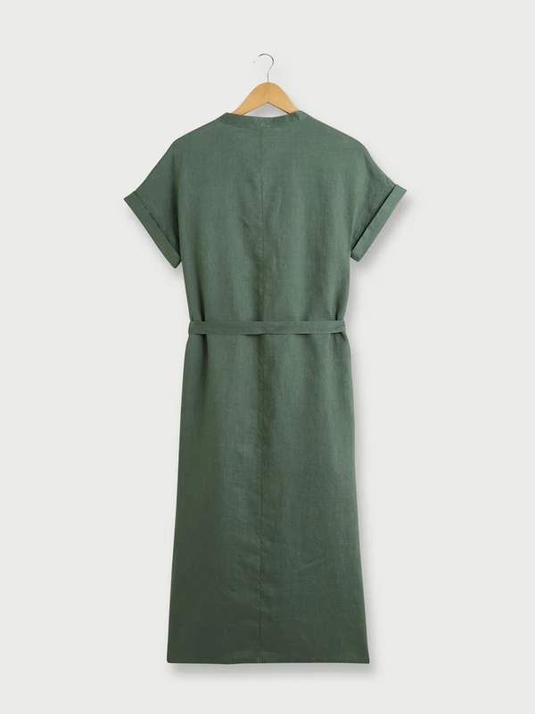 ROBE longue unie en 100% lin, encolure tunisienne JULIE GUERLANDE.